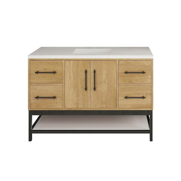 Victoria 47 in. W x 20 in. D x 35 in. H Single Sink Freestanding Frame Bath Vanity in Oak with White Acrylic Top