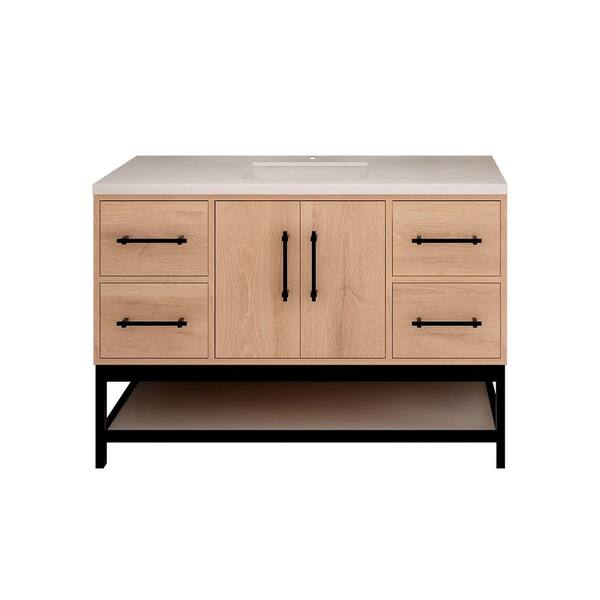 Victoria 47 in. W x 20 in. D x 35 in. H Single Sink Freestanding Frame Bath Vanity in Red Oak with White Acrylic Top