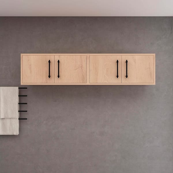 Victoria 59.25 in. W x 11.8 in. D x 13.78 in. H Brown Plywood Wall Overhead Floating Linen Cabinet in Red Oak