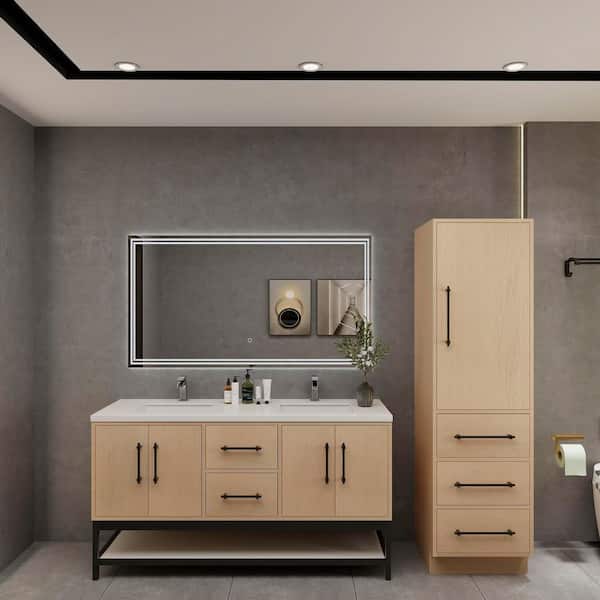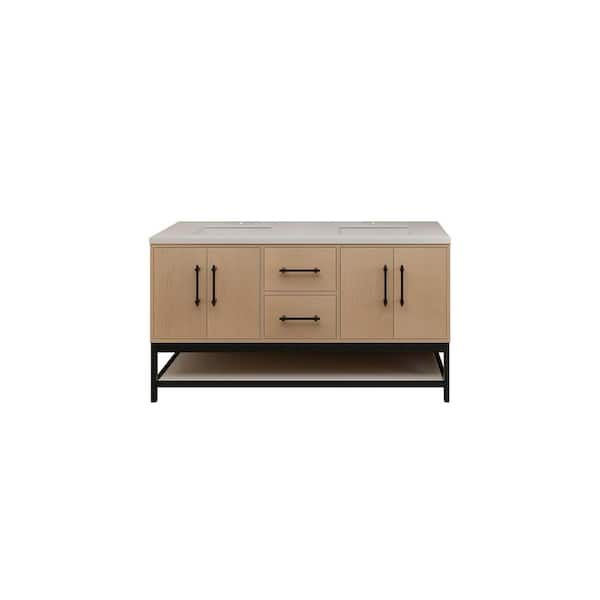 Victoria 59 in. W x 20 in. D x 35 in. H Double Sink Freestanding Frame Bath Vanity in Yellow Oak with White Acrylic Top