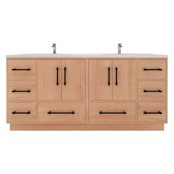 Victoria 71 in. W x 20 in. D x 35 in. H Double Sink Freestanding Bath Vanity in Red Oak with White Acrylic Top