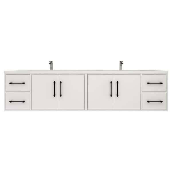 Victoria 84 in. W x 20 in. D x 22 in. H Double Sink Floating Bath Vanity in Gloss White with White Acrylic Top