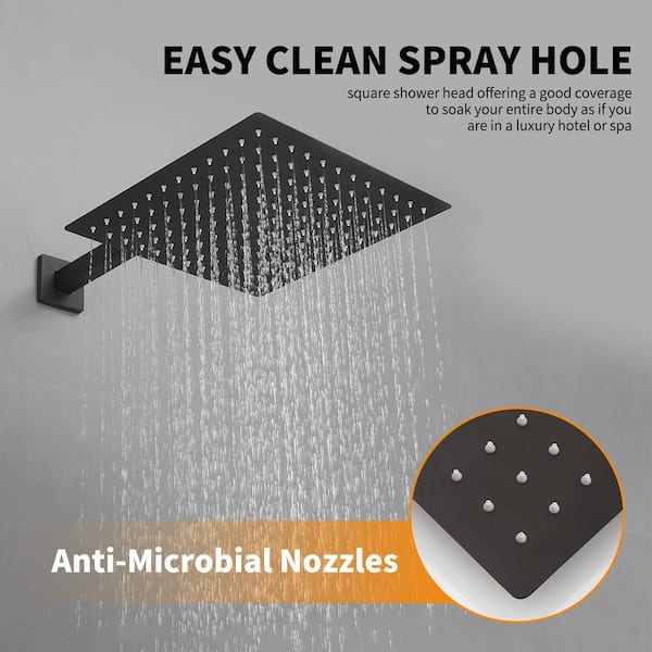 10 in. Showerhead Single Handle 2-Spray Square Shower Faucet 2.5 GPM with Adjustable Heads in Matte Black Valve Included