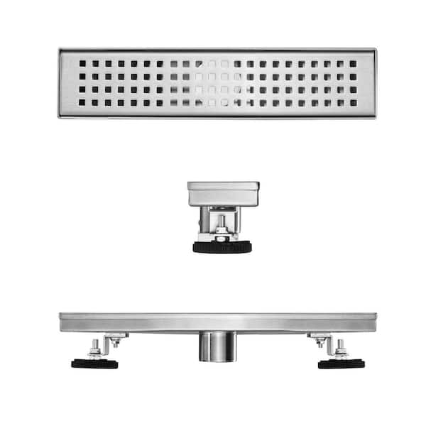 12 in. Stainless Steel Linear Shower Drain with Square Pattern Drain Cover in Brushed Nickel