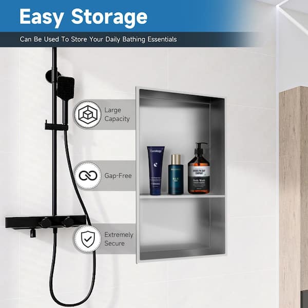 13 in. W x 19 in. H x 4 in. D Bathroom Shower Niche Standard Niche Over Mount Installation in Brushed Nickel
