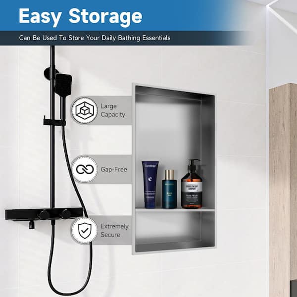 13 in. W x 25 in. H x 4 in. D Stainless Steel Shower Niche Recessed Niche Shower Double Shelves in Brushed Nickel