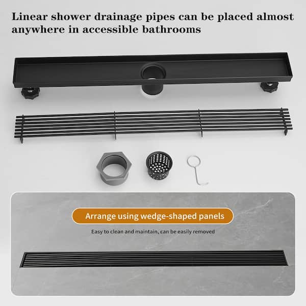 24 in. Stainless Steel Linear Shower Drain with Slot Pattern Drain Cover in Matte Black