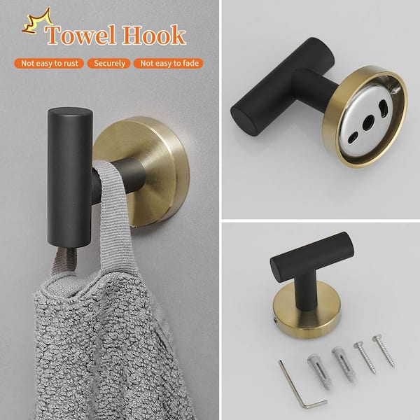 3-Piece Bath Hardware Set with Towel Hook and Toilet Paper Holder and Towel Bar Wall Mount Accessory Set in Black Gold