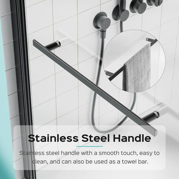 31 in. W x 55 in. H Frameless Pivot Tub Doors in Matte Black with 1/4 in. Thick SGCC Tempered (6mm) Clear Glass