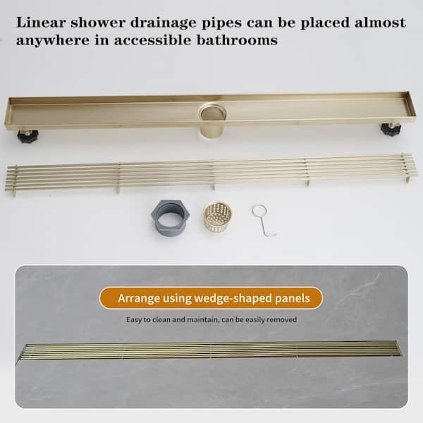 32 in. Stainless Steel Linear Shower Drain with Slot Pattern Drain Cover in Brushed Gold