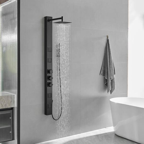 4-Jet 3-in-One Rainfall Shower Panel System with Rainfall Waterfall Shower Head, Shower Wand in Matte Black