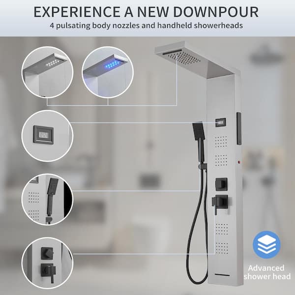 4-Jet Rainfall Shower Tower Shower Panel System with Rainfall Shower Head and Shower Wand With LED light in Black Nickel