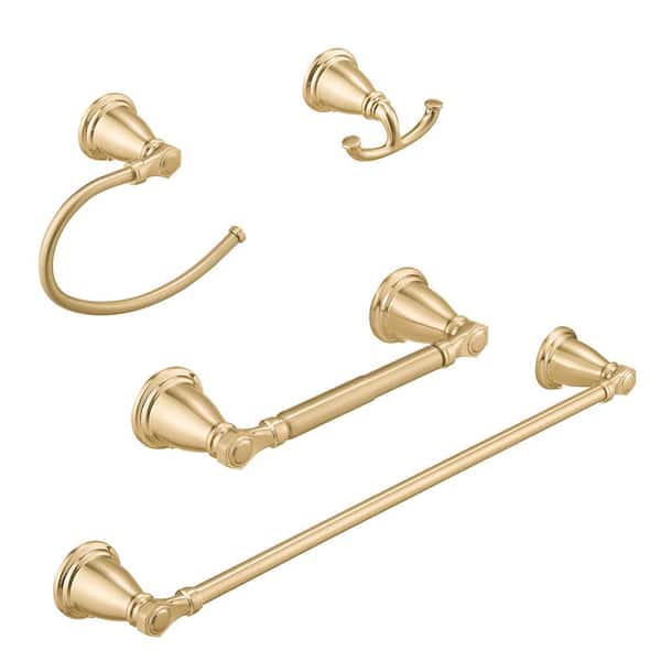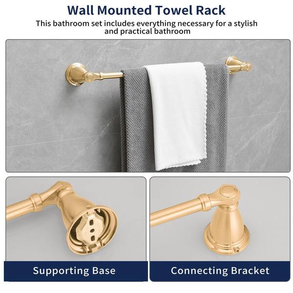 4-Piece Bath Hardware Set with Towel Bar Hand Towel Holder Toilet Paper Holder Towel Hook Modern Square in Brushed Gold