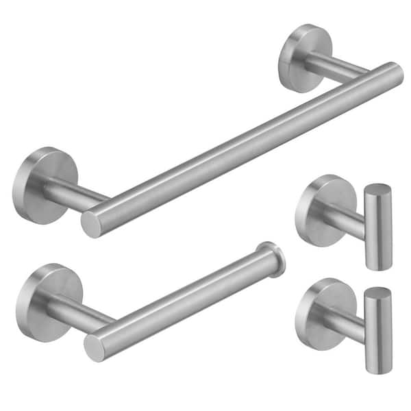4-Piece Bath Hardware Set with Towel Hook Toilet Paper Holder and Towel Bar Wall Mount Accessory Set in Brushed Nickel