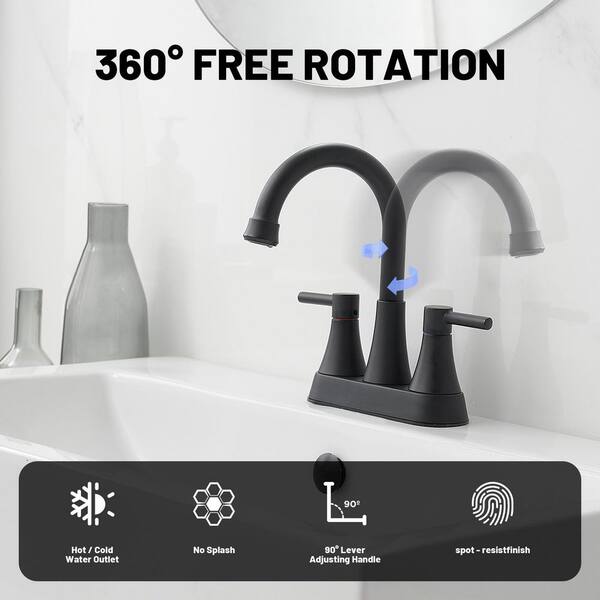 4 in. Centerset 2-Handle High-Arc Bathroom Faucet in Matte Black