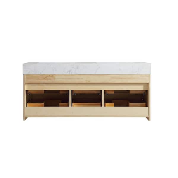 48 in. W x 20.8 in. D x 21.3 in. H Wall Mounted Floating Bath Vanity in Natural Oak with White Resin Top Assembled