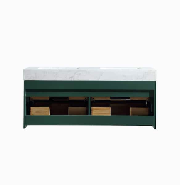 48 in. W x 20.8 in. D x 21.3 in. H Wall Mounted Floating Wood Bath Vanity Cabinet in Green with White Stone Resin Top
