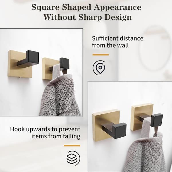 5-Piece Bath Hardware Set with Double Hooks Towel Ring Toilet Paper Holder and 24 in. Towel Bar in Black Gold