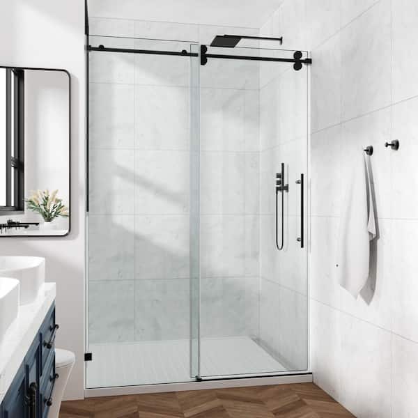 57 in. W x 76 in. H Hinge Frameless Shower Door in Matter Black Finish Clear Glass Soft-Closing Silent Door Bath Panel