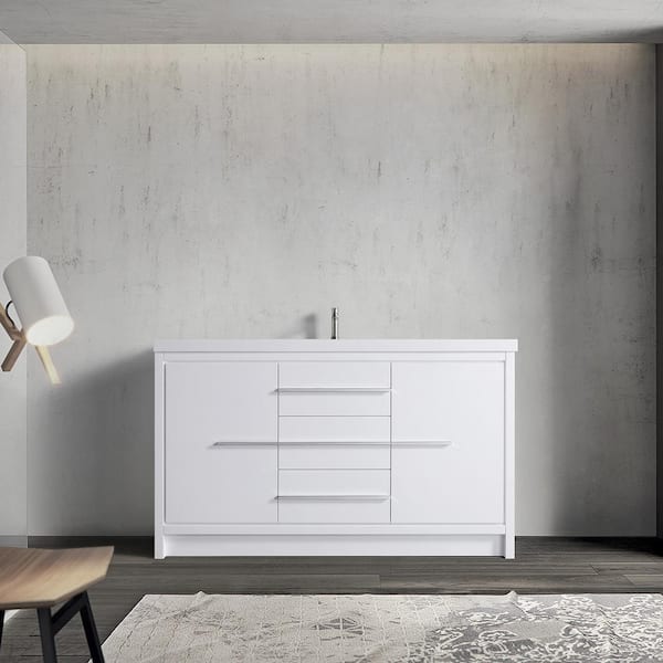 59 in. D x 19.75 in. W x 35 in. H Single Sink Freestanding Bath Vanity in White with Cultured Marble Top (Assembled)