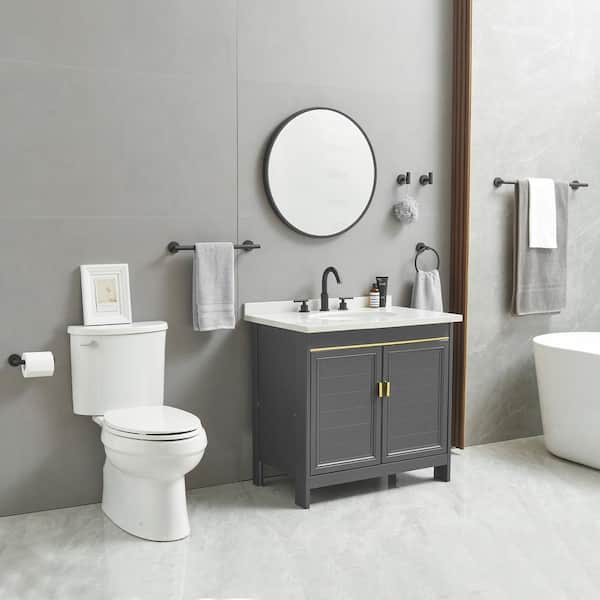 6-Piece Modern Bath Hardware Set with Towel Ring Toilet Paper Holder Towel Hook and Towel Bar Wall Mount in Matte Black