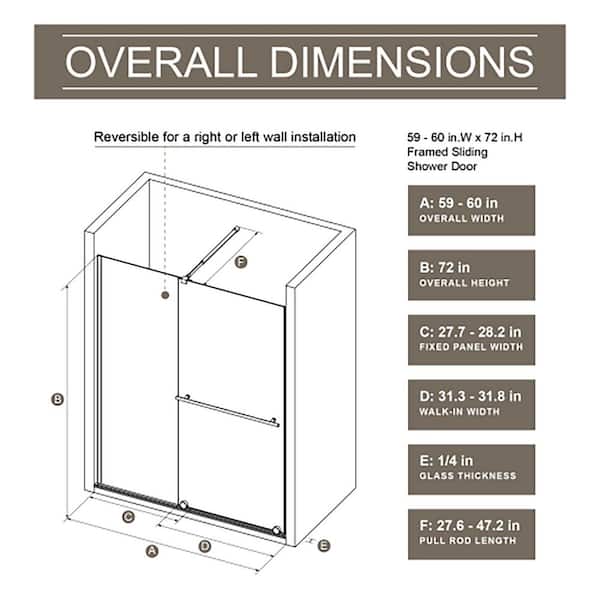 60 in. W x 72 in. H Sliding Door Walk-in Shower Screen Dual Usage, 1/4 in. Thick Panel with Stainless Steel Handle Black