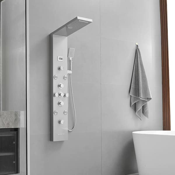 8-Jet Rainfall Shower Tower Shower Panel System with Rainfall Waterfall Shower Head and Shower Wand in chrome Nickel