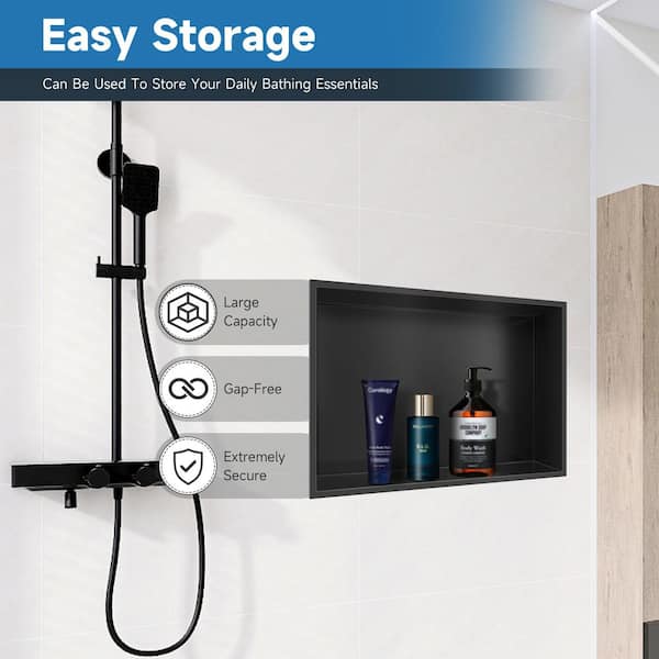 8 in. W x 12 in. H x 4 in. D Shampoo-Soap Standard Double Shower Niche in Matte Black