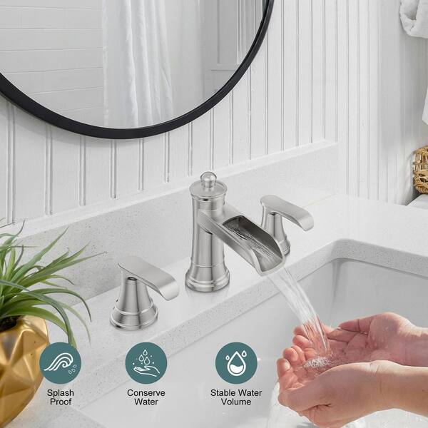 8 in. Waterfall Widespread 2-Handle Bathroom Faucet With Pop-up Drain Assembly in Brushed Nickel