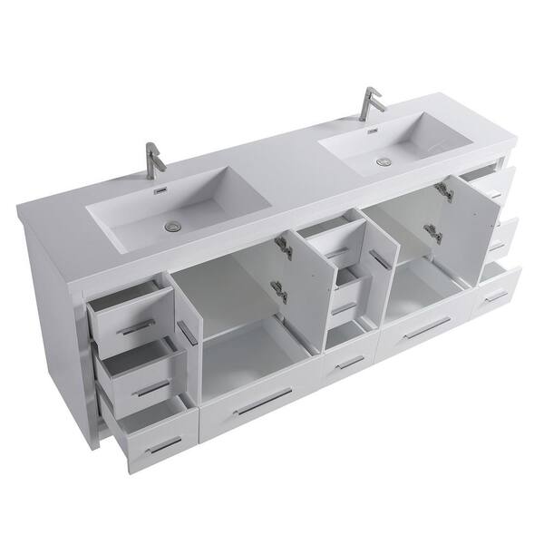84 in. D x 19.75 in. W x 35 in. H Double Sink Freestanding Bath Vanity in White with Cultured Marble Top (Assembled)