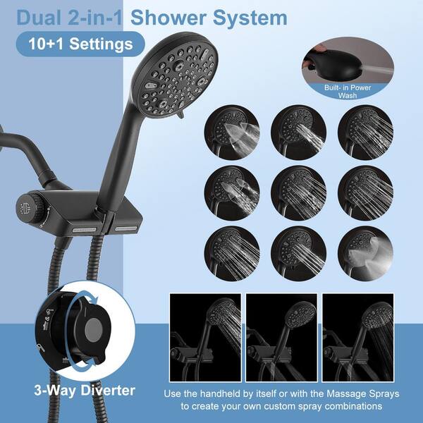 No Handle 10-Spray Wall Mount Handheld Shower Head Shower Faucet 1.8 GPM with Adjustable Heads in. Matte Black