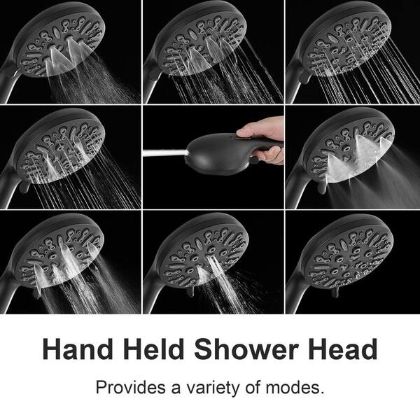 Single Handle 1-Spray Round Rain Shower Faucet Combo Set 1.8 GPM with Dual Function Pressure Balance Valve in Black