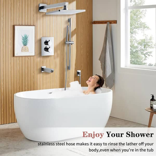 Single-Handle 2-Spray Dual Square Shower Faucet Shower Heads with Sliding Bar 2.5GPM in Polished Chrome (Valve Included)