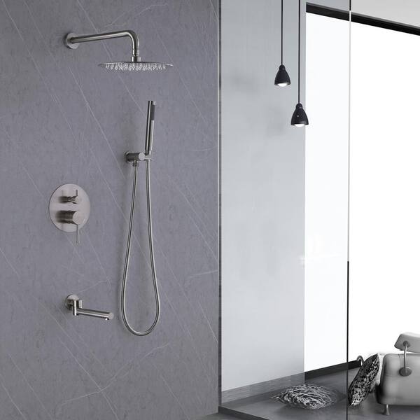 Single-Handle 3-Spray Round High Pressure Tub and Shower Faucet in Brushed Nickel (Valve Included)