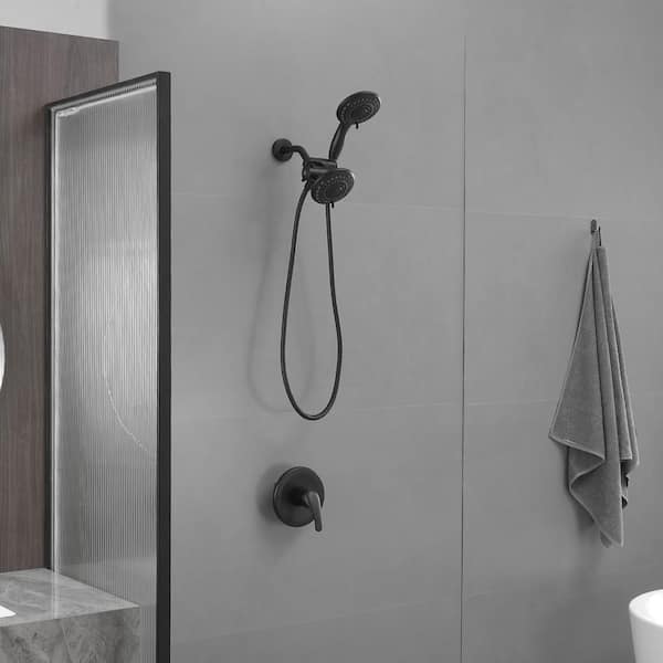 Single-Handle 6-Spray Dual Shower Faucet Set Trim Kit 1.8 GPM with Valve and Filtered Handheld Shower Head in. Black