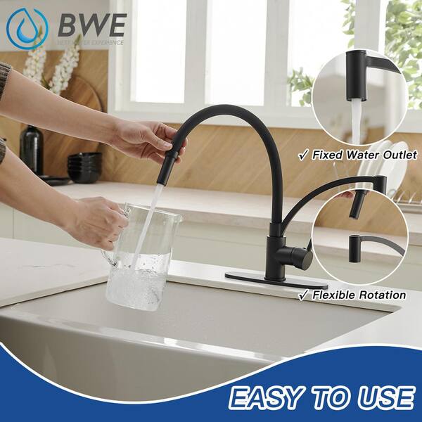 Single-Handle Pull-Down Sprayer 1 Spray High Arc Kitchen Faucet With Deck Plate in Matte Black