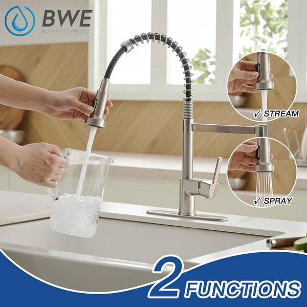 Single-Handle Pull-Down Sprayer 2 Spray High Arc Kitchen Faucet With Deck Plate in Brushed Nickel