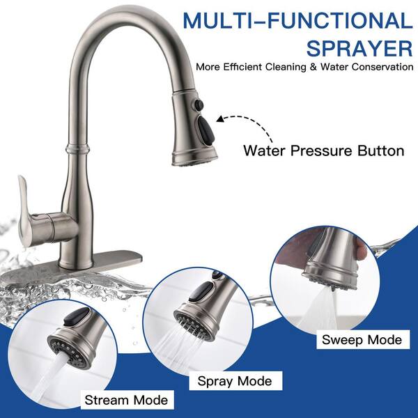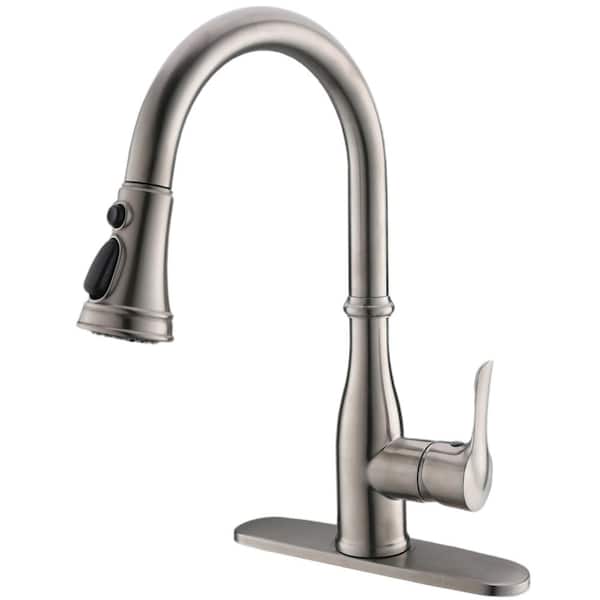 Single-Handle Pull-Down Sprayer 3 Spray High Arc Kitchen Faucet With Deck Plate in Brushed Nickel