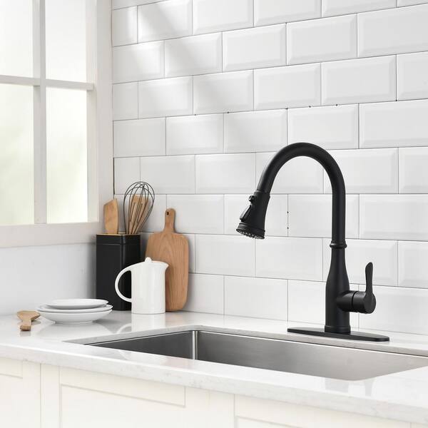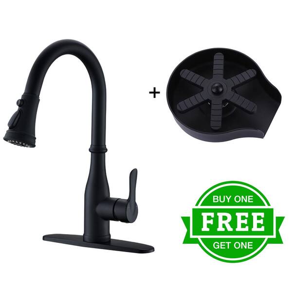 Single Handle Pull-Down Sprayer Kitchen Faucet Bundle Glass Rinser in Matte Black