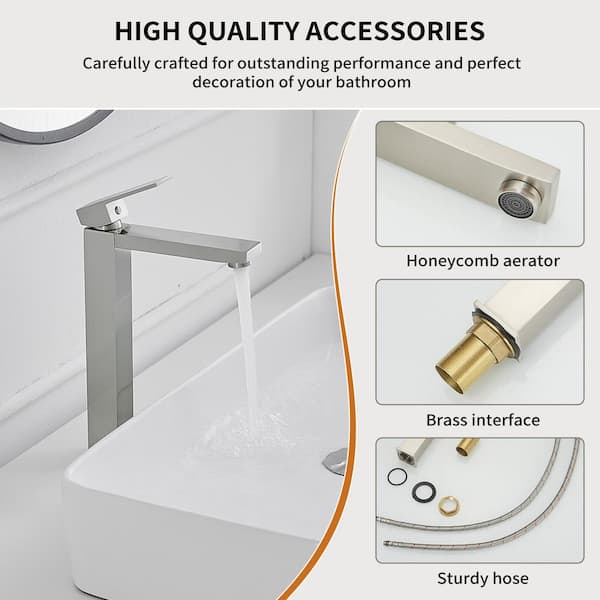 Single Hole Single Handle Bathroom Vessel Sink Faucet With Self-cleaning Nozzles Supply Hose in Brushed Nickel