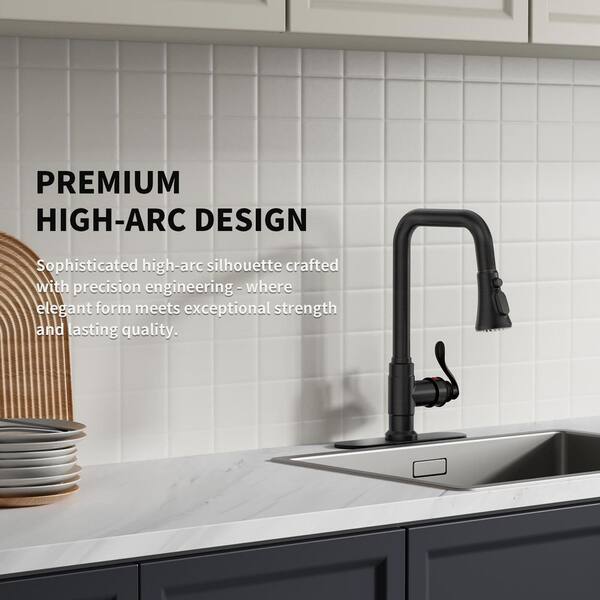 Spring Single Handle Pull-Down Sprayer Kitchen Faucet Deckplate Included in Oil Rubbed Bronze