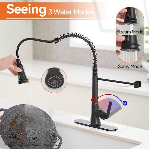 Spring Single Handle Pull Down Sprayer Kitchen Faucet Deckplate Included in Stainless Steel Matte Black