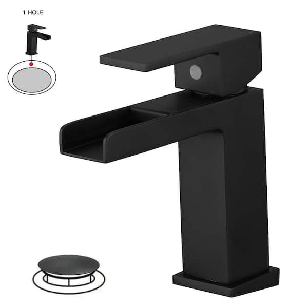 Waterfall Single Handle Single Hole Modern Bathroom Faucet Bathroom Drip-Free Lavatory RV Sink Faucet in Matte Black