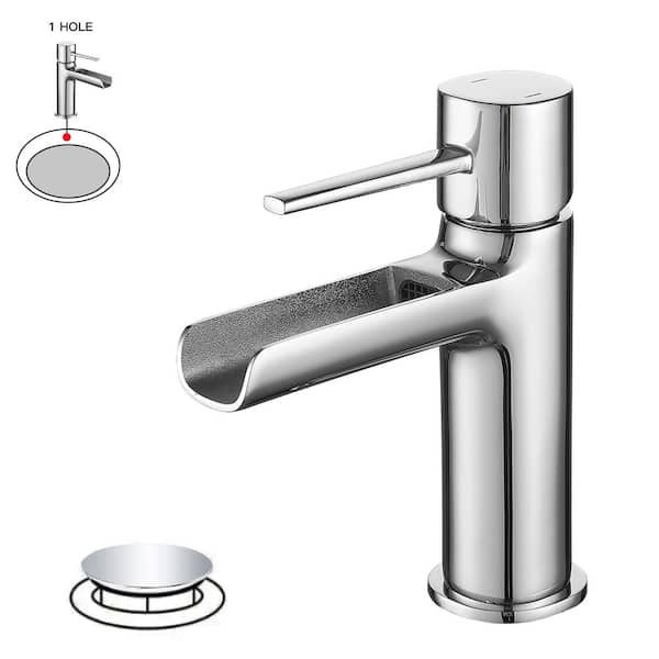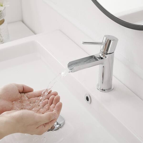 Waterfall Single Handle Single Hole Modern Bathroom Faucet Bathroom Drip-Free Lavatory RV Sink Faucet in Polished Chrome
