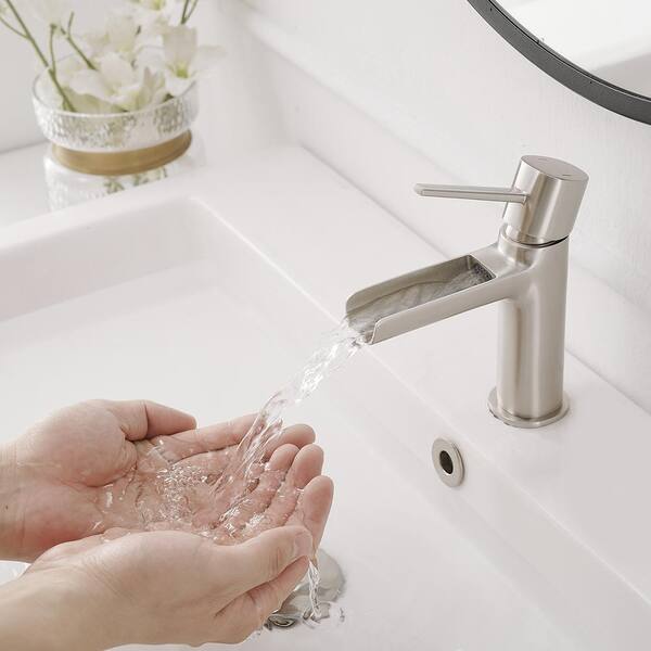 Waterfall Single Handle Single Hole Modern Bathroom Faucet Bathroom Drip-Free Vanity RV Sink Faucet in Brushed Nickel