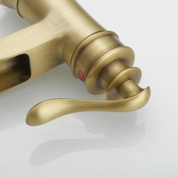 Waterfall Single Hole Single-Handle Low-Arc Bathroom Faucet With Pop-Up Drain Assembly in Antique