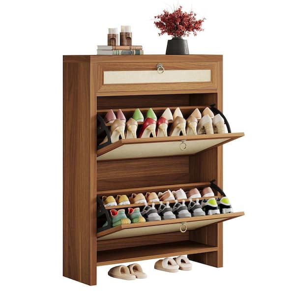 43.3 in. H x 31.5 W Brown Wood Shoe Storage Cabinet, Shoe Storage Rack Organizer with Adjustable Shelves for Entryway