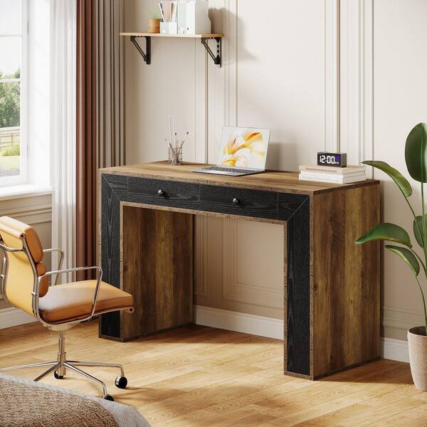 47.24 Inch Rectangular Rustic Brown Modern Wood Computer Desk Home Office School Workstation Table 2 Storage Drawers