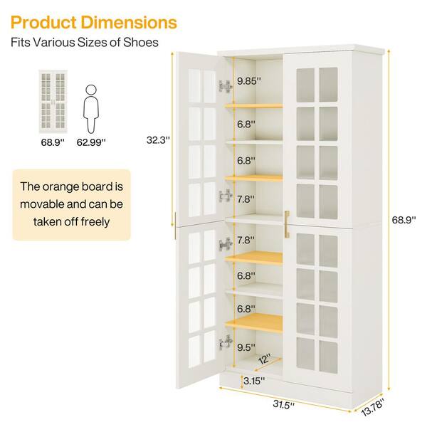Alan White 71 in. H Storage Cabinet with 7 Adjustable Shelve, Kitchen Pantry Cabinet with Doors for Living Room Bathroom