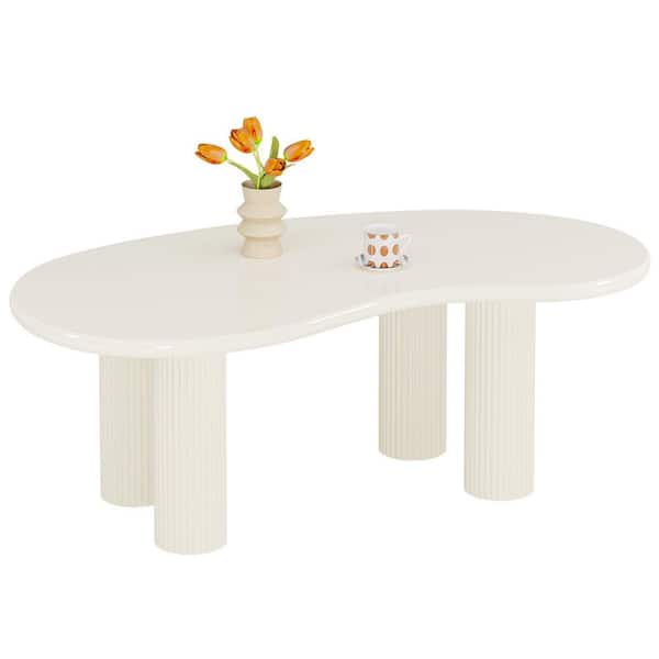 Allan 46.45 in. White Irregular Specialty Cloud Shape Wood Coffee Table with 4 Fluted Cylindrical Legs